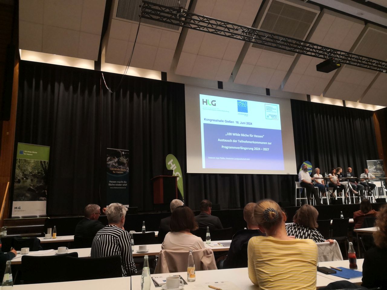 Bei der Veranstaltung in Gießen konnten sich die Kommunen und Verbände über die bisherigen Erfolge und zukünftigen Ziele des Programms informieren und mit anderen Teilnehmerkommunen zu ihren Erfahrungen austauschen. In einer Podiumsdiskussion mit Experten zu den Themen Flächenbereitstellung, Anforderungen im Planungs- und Genehmigungsprozess und Bibermanagement wurde über die Herausforderungen bei Renaturierungsmaßnahmen diskutiert und wertvolle Anregungen für die Fortführung des Programms gesammelt.