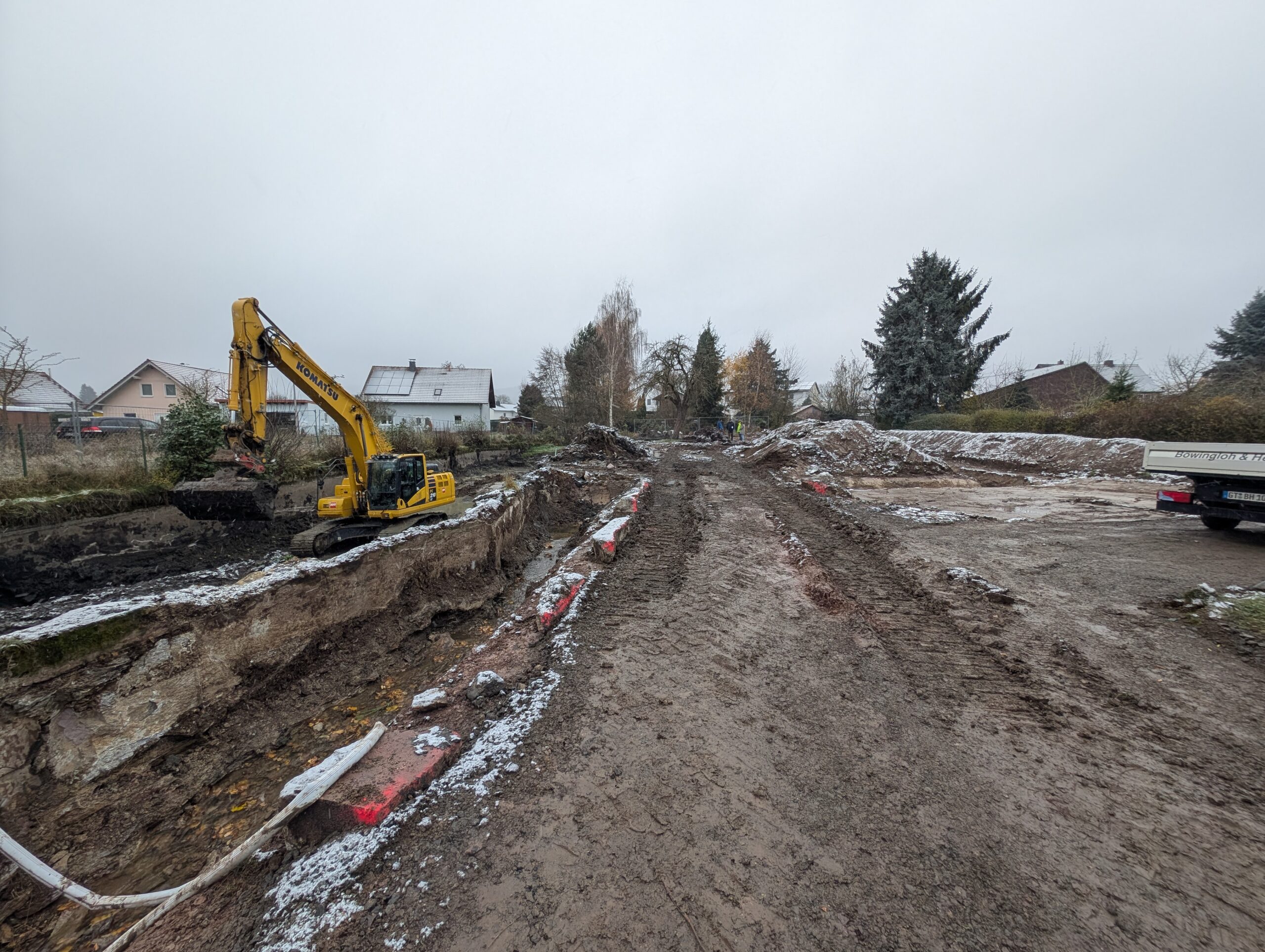 Im Stadtgebiet von Bad Wildungen wurde in 2020 zunächst mit dem Flächenmanagement begonnen. Anfang 2022 folgte die Beauftragung eines Planungsbüro für die umzusetzenden Gewässerentwicklungsmaßnahmen. Das Büro hat zunächst für die gemeindeeigenen Flächen, dann für weitere Flächen erste Planungsvorschläge entworfen. Nach mehreren Abstimmungen mit den Fachbehörden, betroffene Anlieger und Bewirtschafter, wurde die Planung fertig gestellt und Ende 2024 genehmigt. Im nächsten Schritt wurde im Nov. 2025 mit der Bauumsetzung begonnen.